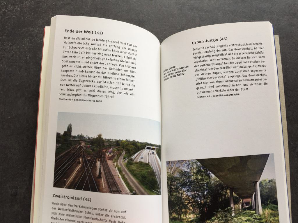 Durch den Karlsruher Wilden Süden, fernab der bekannten Karlruher Sehenswürdigkeiten wurde eine außergewöhnliche Freizeit- und Stadterlebnisroute entwickelt. Eine Expedition ins Unbekannte, die den Raum neu erschließt und dort Qualitäten aufdeckt, die bisher nicht als Qualität gedacht wurden oder gesehen werden konnten. Der Karlsruher Süden soll damit aktiv ins Bewusstsein der Stadt und ihrer Bewohner geholt und dauerhaft als attraktiver Erfahrungsraum etabliert werden. Ausgestattet mit Stadtführer und Expeditionskarte können sich die Besucher zu Fuß oder per Fahrrad auf Entdeckungstour begeben.
