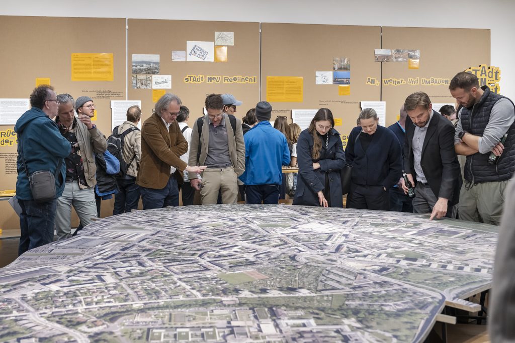 Die „arbeitende“ Ausstellung stellt vielfältige Werkzeuge der Stadtplanung und der Architektur vor, die anhand der Aktivitäten von Studierenden vor Ort einer interessierten Stadtbevölkerung beiläufig im „Arbeiten“ gezeigt, und somit die reichhaltigen Perspektiven und räumliche Zusammenhänge im Dialog vermittelt werden. Denn Städte sind nie fertig gebaut, sie bleiben … in Arbeit.